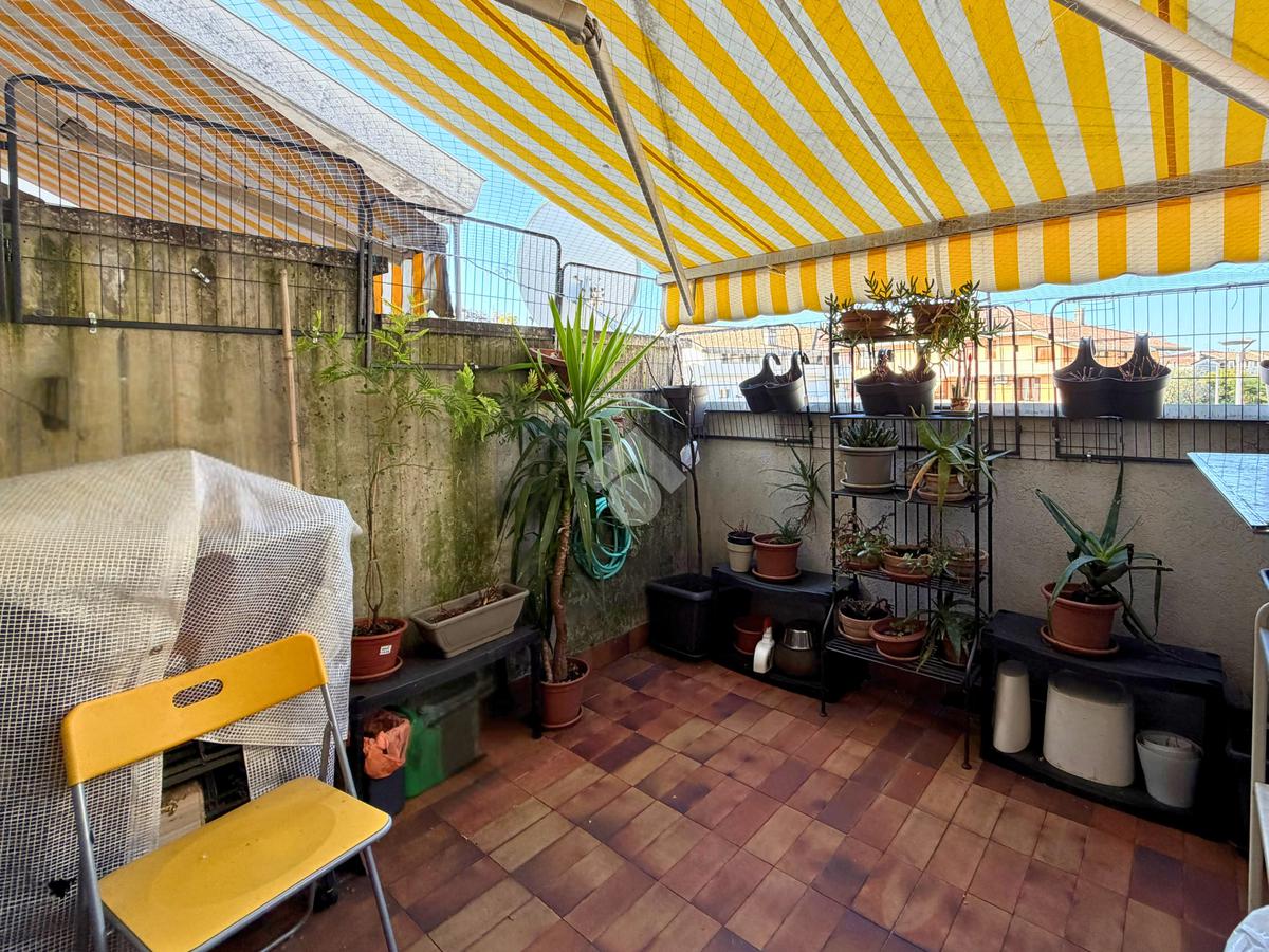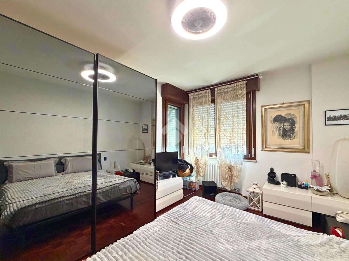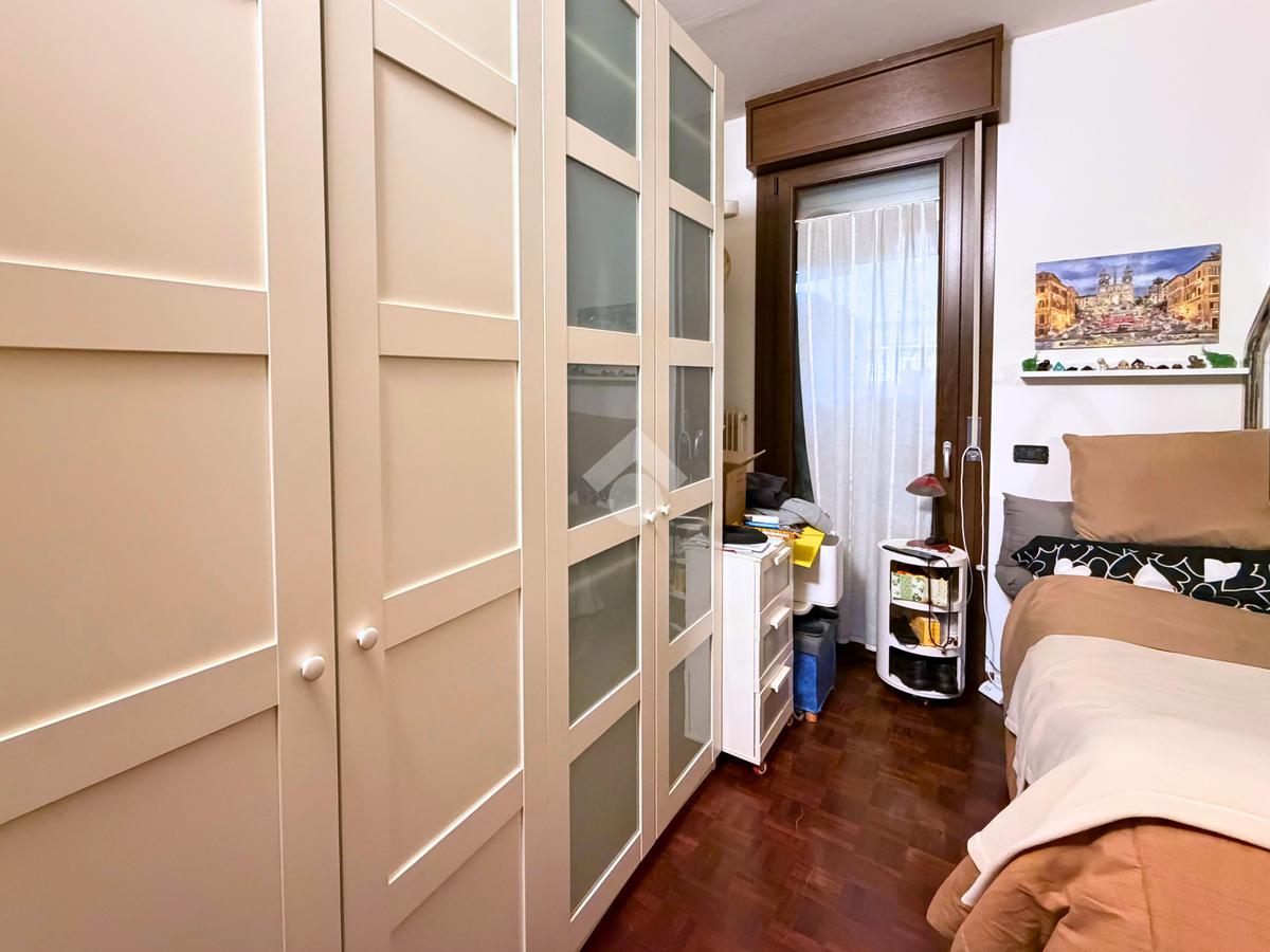 Completa la proprietà una terza stanza versatile, perfetta come terza camera, studio o stanza hobby, dalla quale si accede a una terrazza abitabile con affaccio interno su Piazza Torre, che garantisce maggiore tranquillità e privacy.