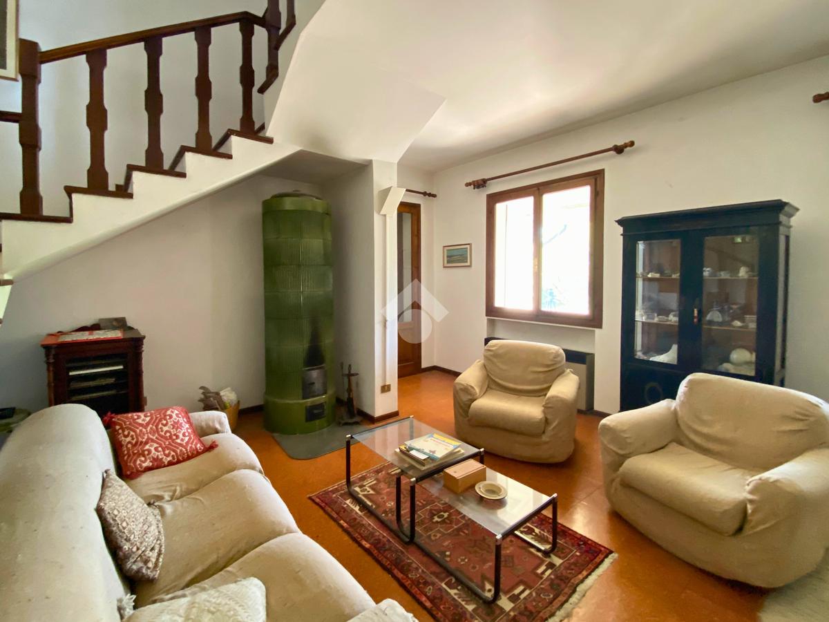 Il soggiorno è comodo e luminoso, arricchito dalla presenza di una stufa che crea un’atmosfera calda e accogliente nei mesi più freddi. La cucina, anch’essa separata è pensata per un uso pratico e quotidiano. La sala da pranzo, collegata agli altri ambienti, offre uno spazio tranquillo per i pasti in famiglia o con gli ospiti. Un ripostiglio comodo completa il piano terra, aggiungendo utilità e ordine alla zona giorno.
